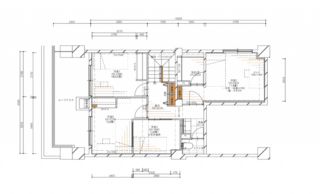 2階にはご夫婦の個室と、お子さまたちの部屋をレイアウト。